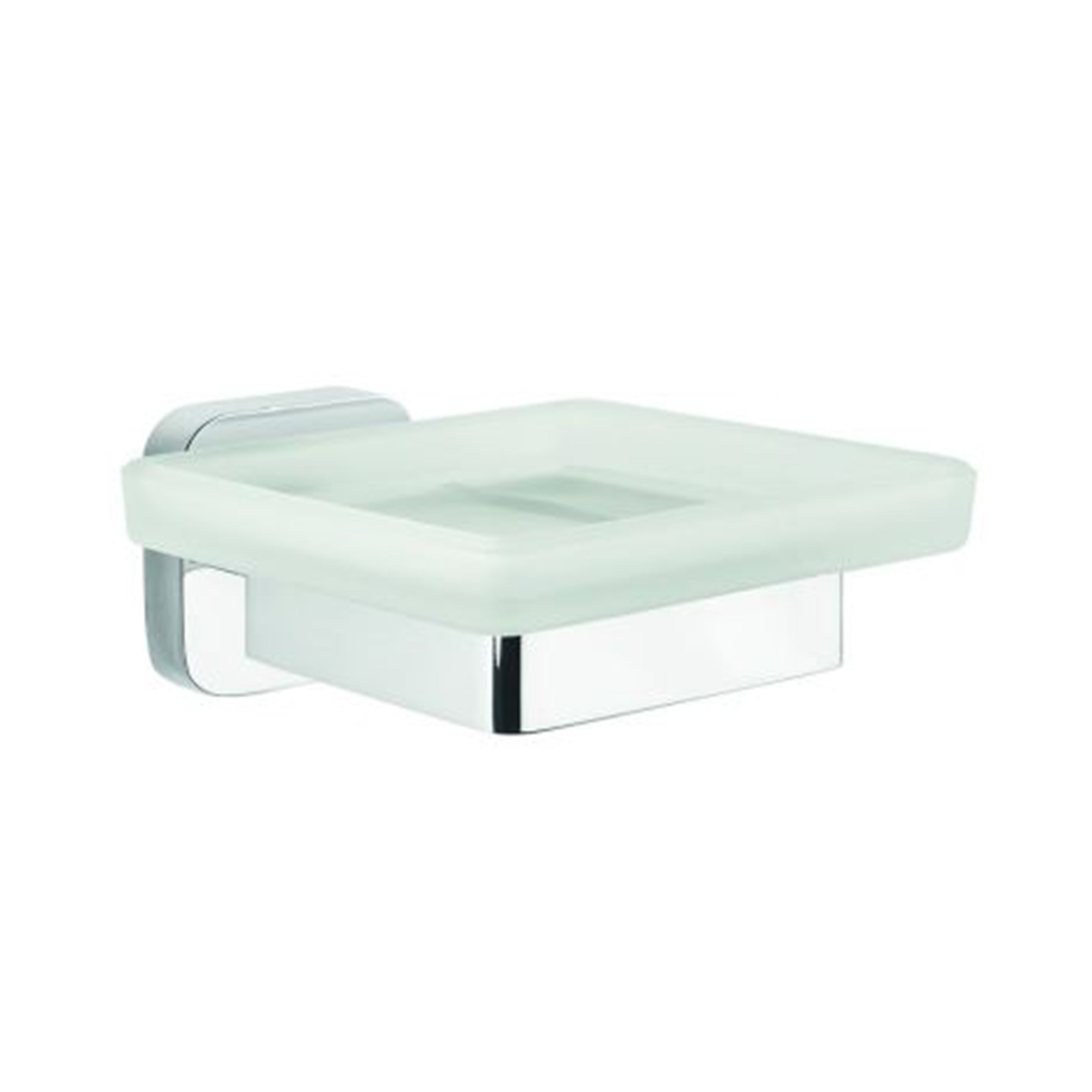 Seifenhalter PRO EDGE, H 50mm B 110mm T 133mm, Einsatz Glas satiniert, Halterung Zinkdruckguss verchromt, inkl. nie wieder bohren.-Profi Befestigungstechnik (Kleben oder Bohren)