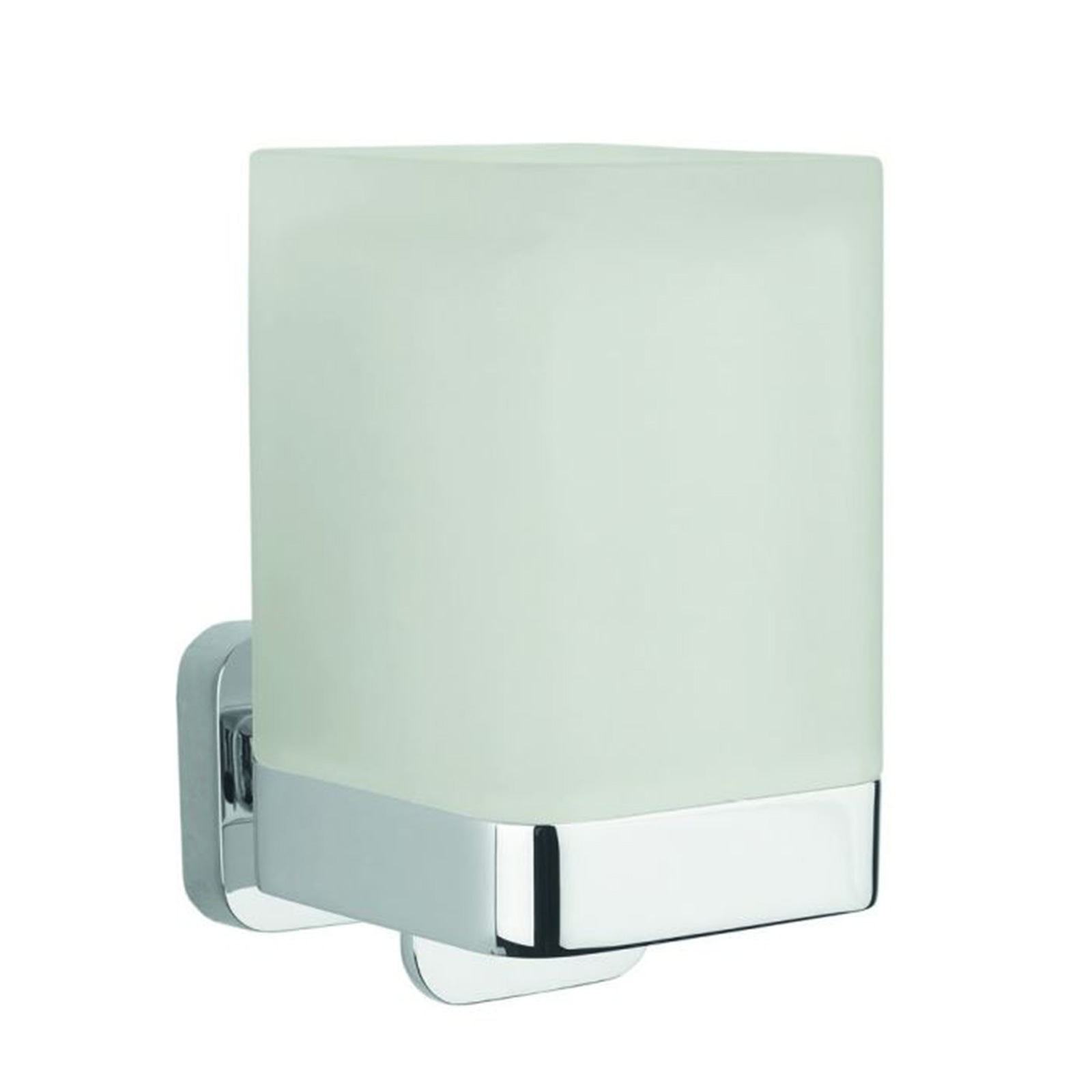 Seifenspender mit Betätigung von unten PRO EDGE, B 78mm H 127mm T 111mm, Einsatz Glas satiniert, Halterung Zinkdruckguss verchromt, inkl. nie wieder bohren.-Profi-Befestigungstechnik (Kleben oder Bohren)